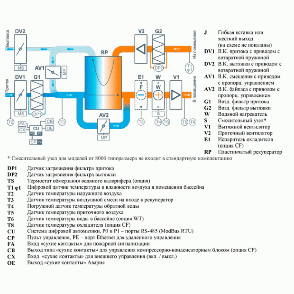 - Возможные опции WT температура воздуха по температуре воды PW дополнительный водяной калорифер CF дополнительный охладитель и управление ККБ DS диспетчеризация.